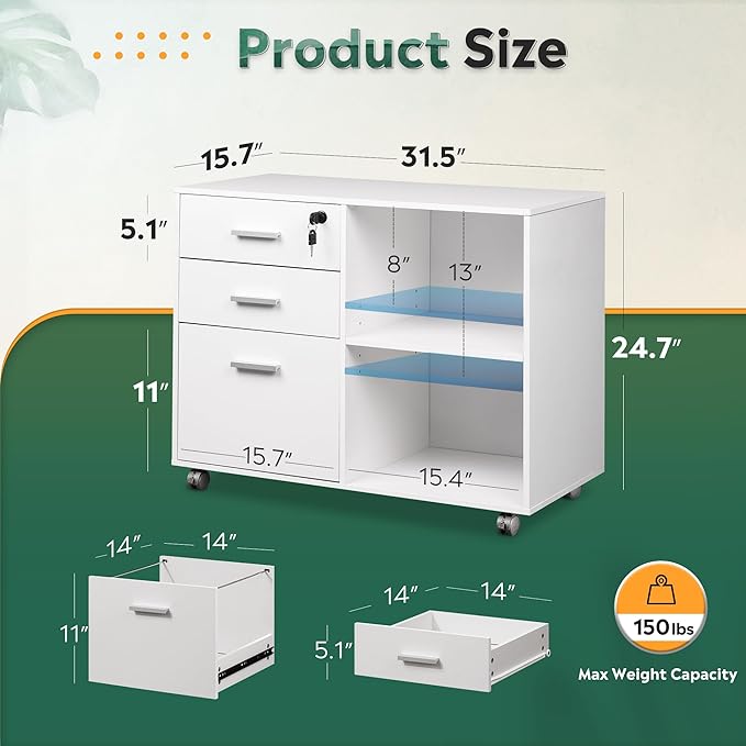 About This MULTIFUNCTIONAL & STYLISH: This filing cabinet with open storage spaces, file drawers and storage cabinet is designed to...