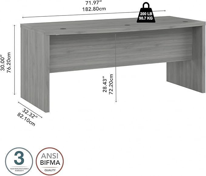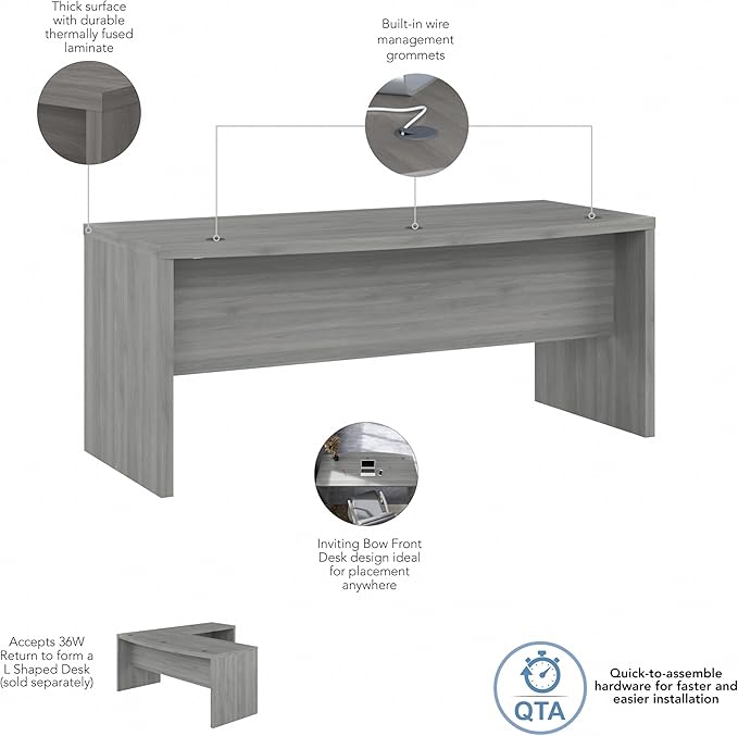 Bush Business Furniture Echo Bow Front Desk, 72W, Modern Gray