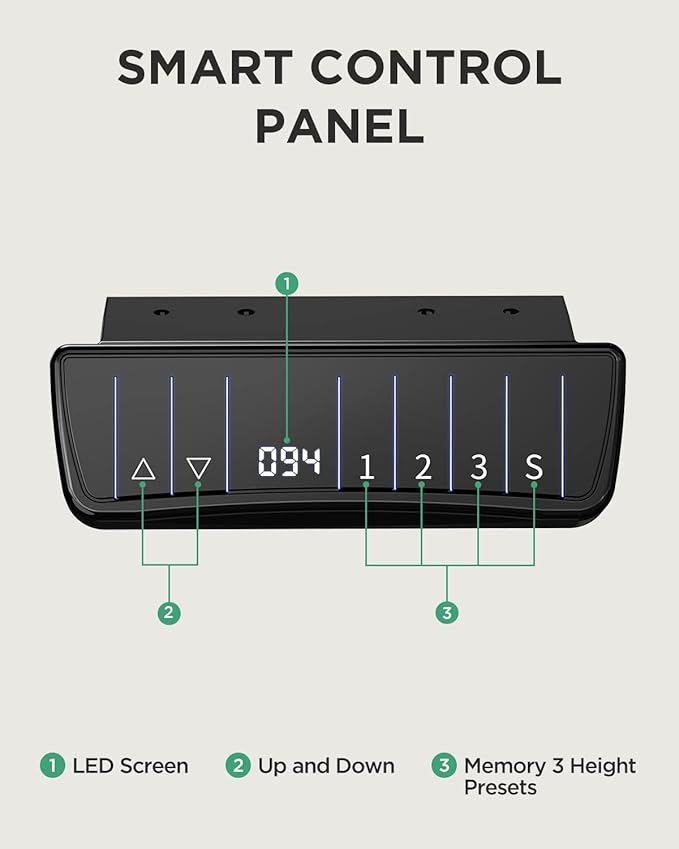 About This Electric Height Adjustable: The desk has 3 preset buttons to customize your desired heights from 28.3in to 47.2in...