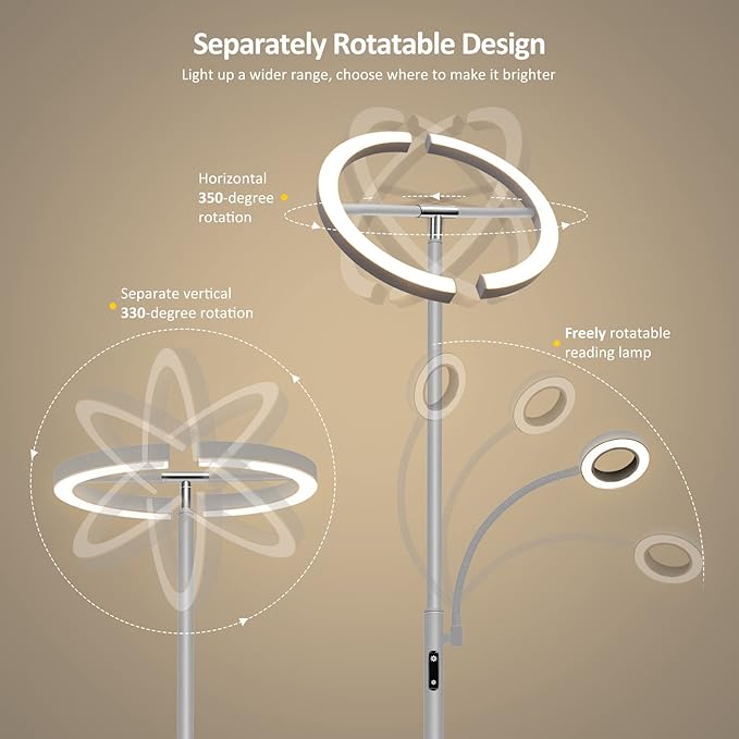 About This 【Modern and Unique Rotatable Floor Lamp】FIMEI innovative split-designed floor lamp features two parts semicircle ring light that can...