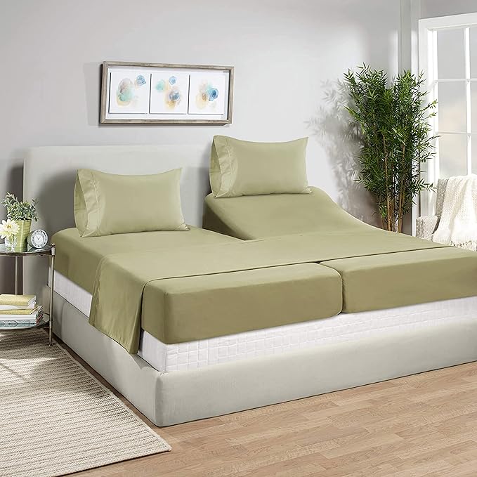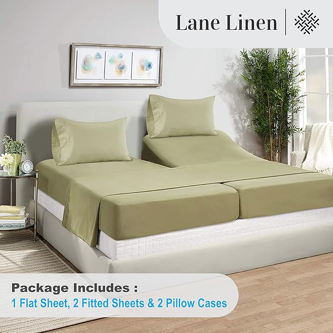 LANE LINEN Split King Sheets for Adjustable Beds - 1000 Thread Count 5 Piece Set 100% Egyptian Cotton Sateen Weave Cool Breathable & Soft 2 Fitted Fits Upto 17" Deep Pockets Sea Foam
