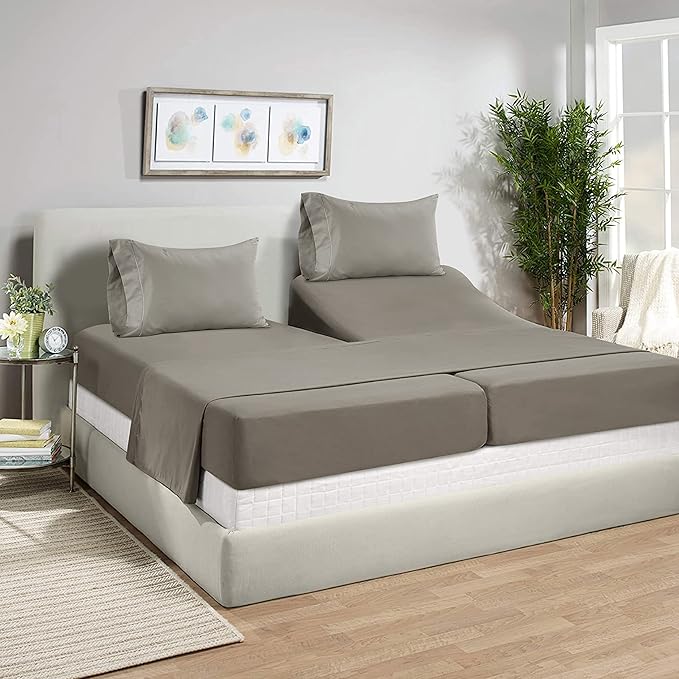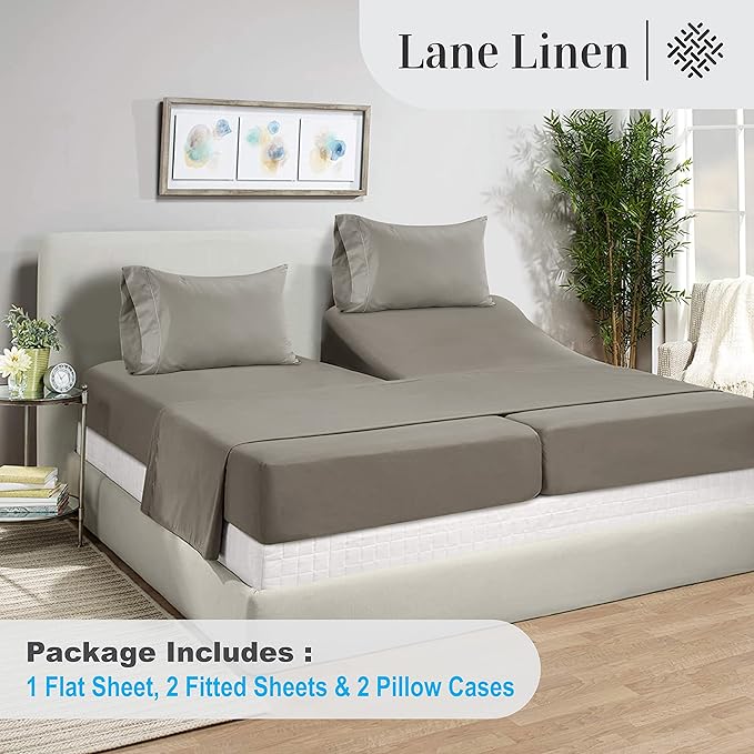 LANE LINEN Split King Sheets for Adjustable Beds - 1000 Thread Count 5 Piece Set 100% Egyptian Cotton Sateen Weave Cool Breathable & Soft 2 Fitted Fits Upto 17" Deep Pockets Silver