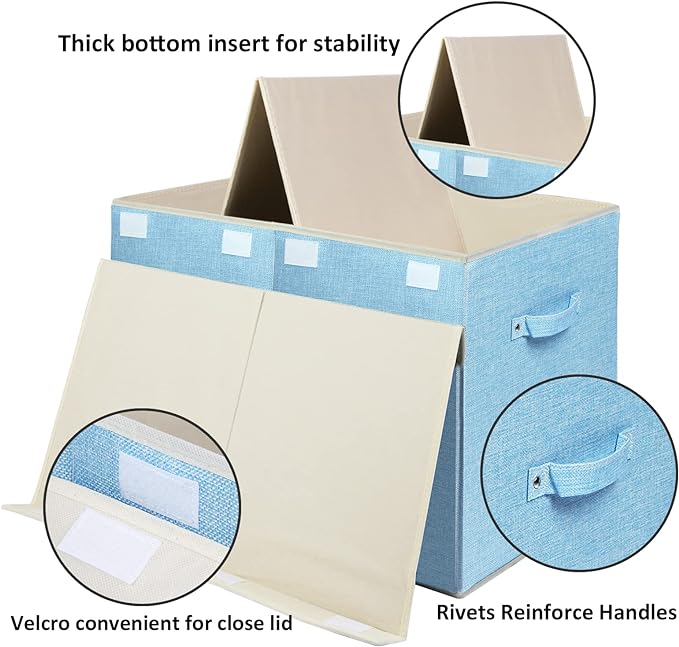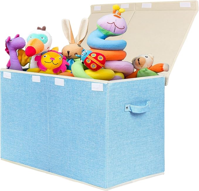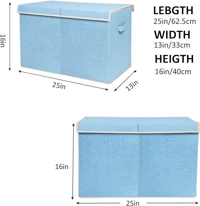 popoly Large Toy Box Chest with Lid, Collapsible Sturdy Toy Bin Storage Organizer Boxes Baskets for Kids, Boys, Girls, Nursery, Playroom, 25"x13" x16" (Linen Blue)