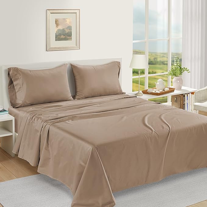 LANE LINEN 100% Egyptian Cotton Bed Sheets - 1000 Thread Count 3-Piece Twin XL Set Long Staple Bedding Sateen Weave Luxury Hotel Fits Upto 16" Mattress Taupe