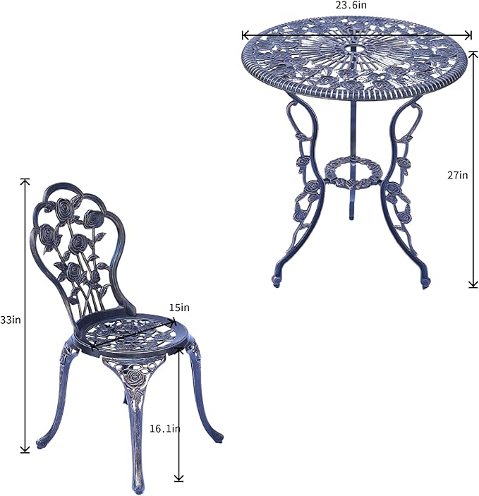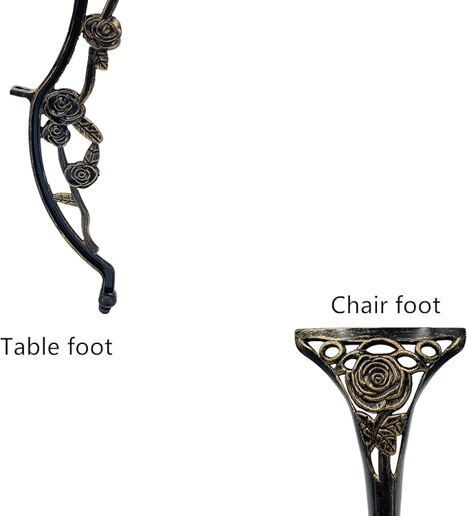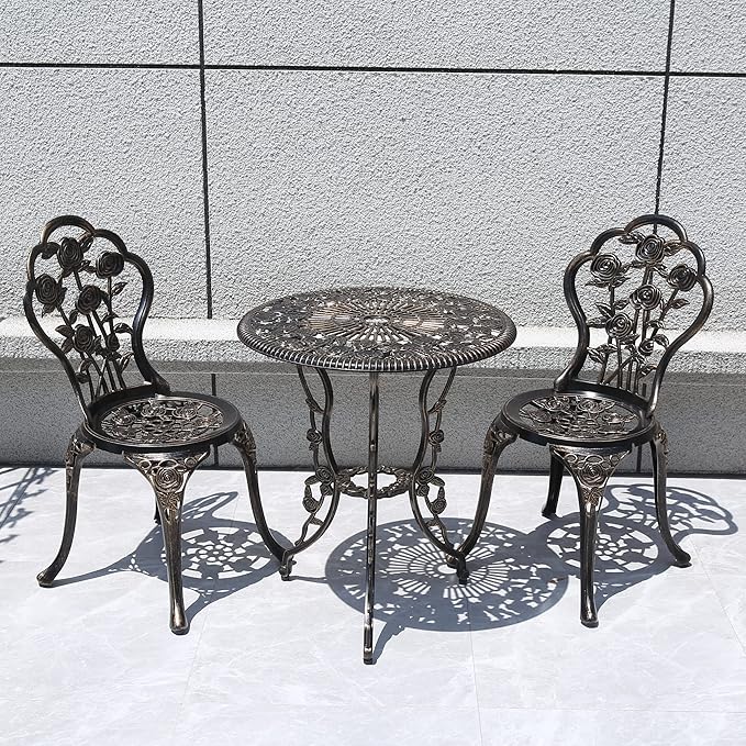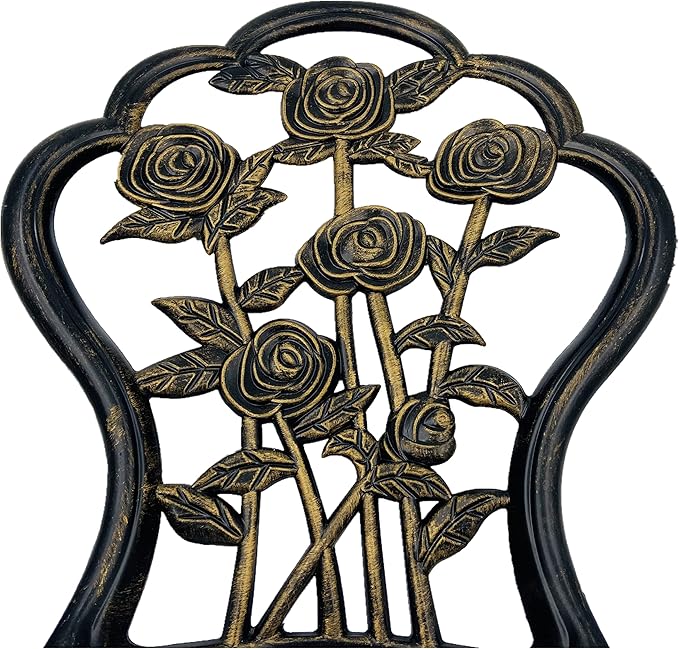 KAILI Outdoor Furniture Bistro Set with Rose Pattern 1 Table 2 Chairs for Garden Patio Porch (Rose-Bronzed)