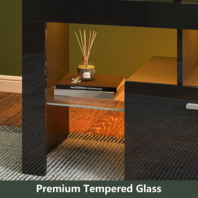 About This 【Modern LED TV Stand】-Overall dimension: 63" W x 13.8" D x 18" H. Wood TV stand can fit...