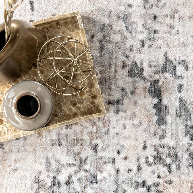 nuLOOM Danae Abstract 5x8 Machine Washable Area Rug for Living Room Bedroom Dining Room Kitchen, Ivory/Grey