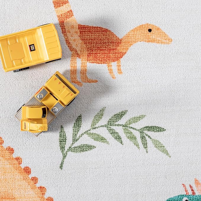 nuLOOM Eamon Dinosaur Machine Washable Kids Ultra Thin Area Rug, 4' x 6', White Multi