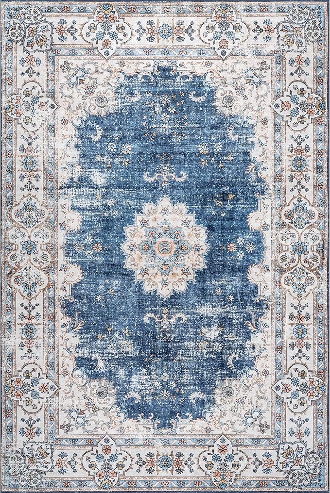 nuLOOM Ren Vintage Floral Machine Washable Ultra Thin Area Rug, 8x10, Blue