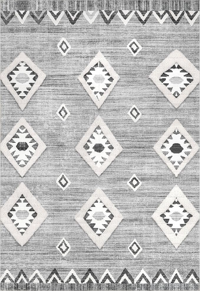 nuLOOM Arie Tribal Diamond Machine Washable Ultra Thin Area Rug, 5' x 8', Grey