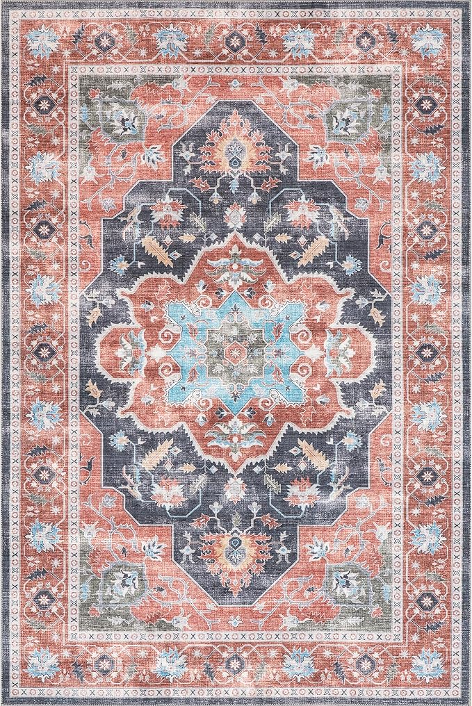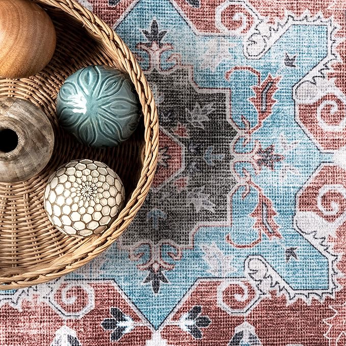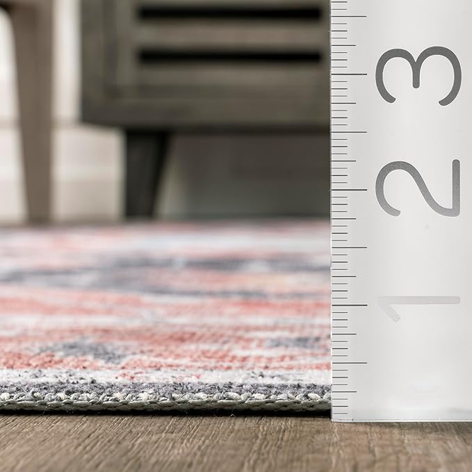 nuLOOM Jay Persian Medallion Machine Washable Ultra Thin Area Rug, 5' x 8', Red