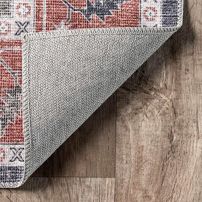 nuLOOM Jay Persian Medallion Machine Washable Ultra Thin Area Rug, 8' x 10', Red