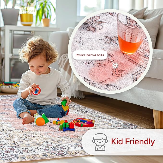 About This Stain-Resistant Material: Our machine washable rug is crafted from 100% Polyester that is stain-resistant, lightweight, and easy to...