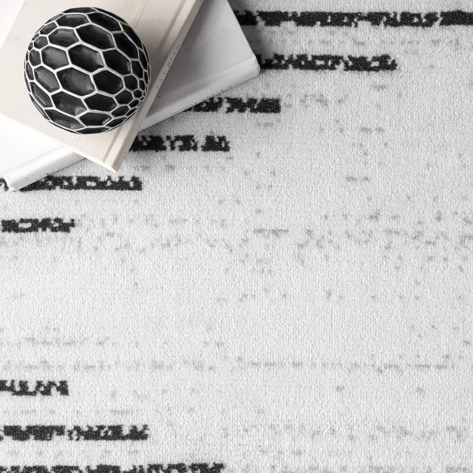 nuLOOM Romina Machine Washable Diamond Stripes Ultra Thin Area Rug, 9x12, White