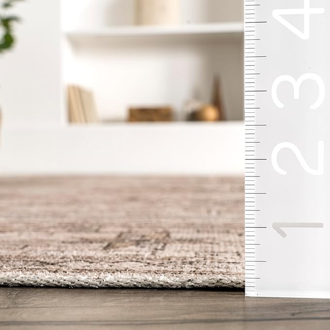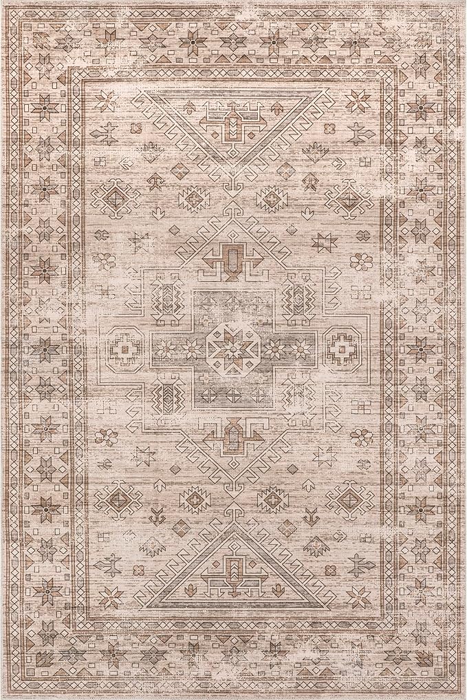 nuLOOM Amie Persian Border Machine Washable Ultra Thin Area Rug, 4' x 6', Light Brown