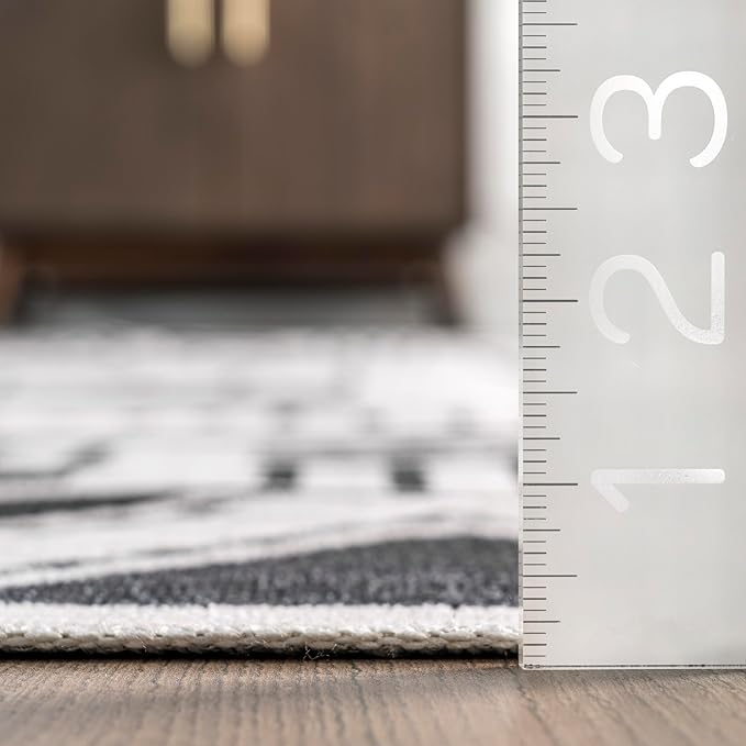 nuLOOM Evia Tribal Stripes Machine Washable Ultra Thin Area Rug, 5' x 8', Charcoal