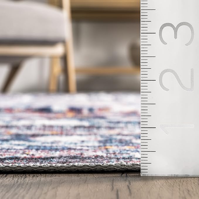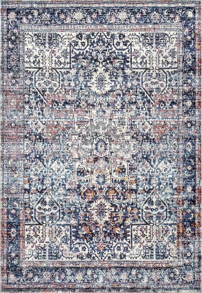 nuLOOM Kasi Vintage Persian Machine Washable Ultra Thin Area Rug, 5' x 8', Blue