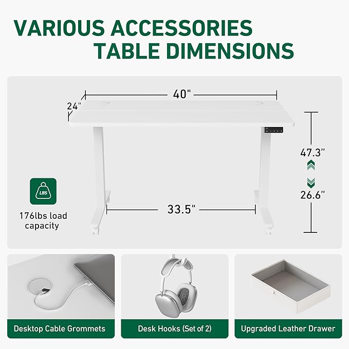 FEZIBO 40 x 24 Inches Standing Desk with Drawer, Adjustable Height Electric Stand up Desk with Storage, Sit Stand Home Office Desk, Ergonomic Computer Desk, White