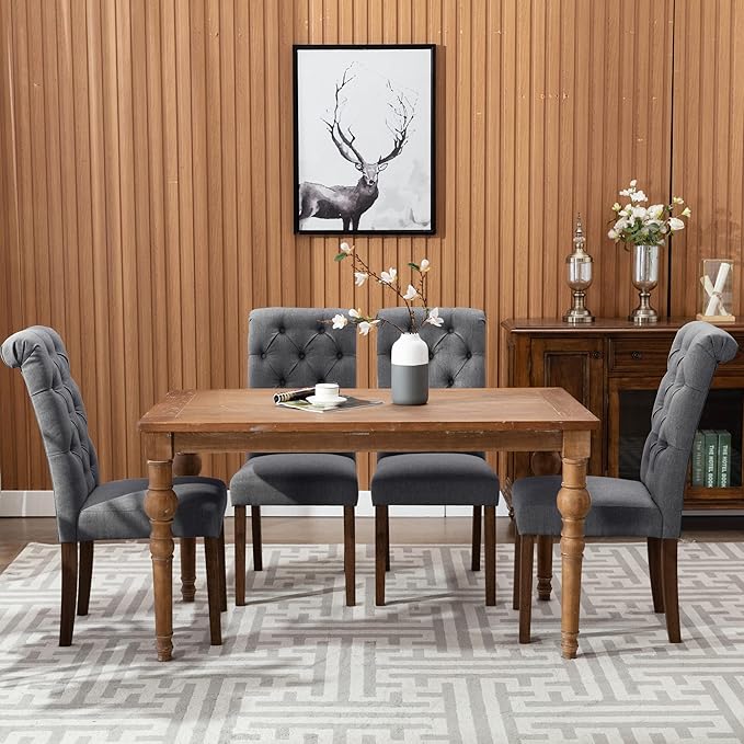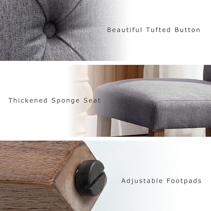 COLAMY Button Tufted Diner Chair Set of 6, Upholstered Stylish Fabric Accent Parsons Chairs with Solid Wood Legs and Padded Seat for Dining Room, Kitchen - Grey