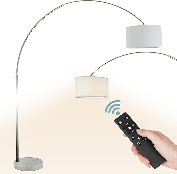 Contemporary 81" Tall Long Reach Adjustable Arc LED Floor Lamp with Remote Control - Stylish Corner Light Arching Lamp Marble Base - Best Modern Lighting for Living Room, Bedroom, and Home Decor