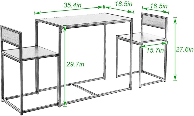 About This 【Dimension】: Table: L35.4* W18.5* H29.7 inch ( L90* W47* H75.5 cm); Chair: L16.5* W15.7* H27.6 inch ( L42*...