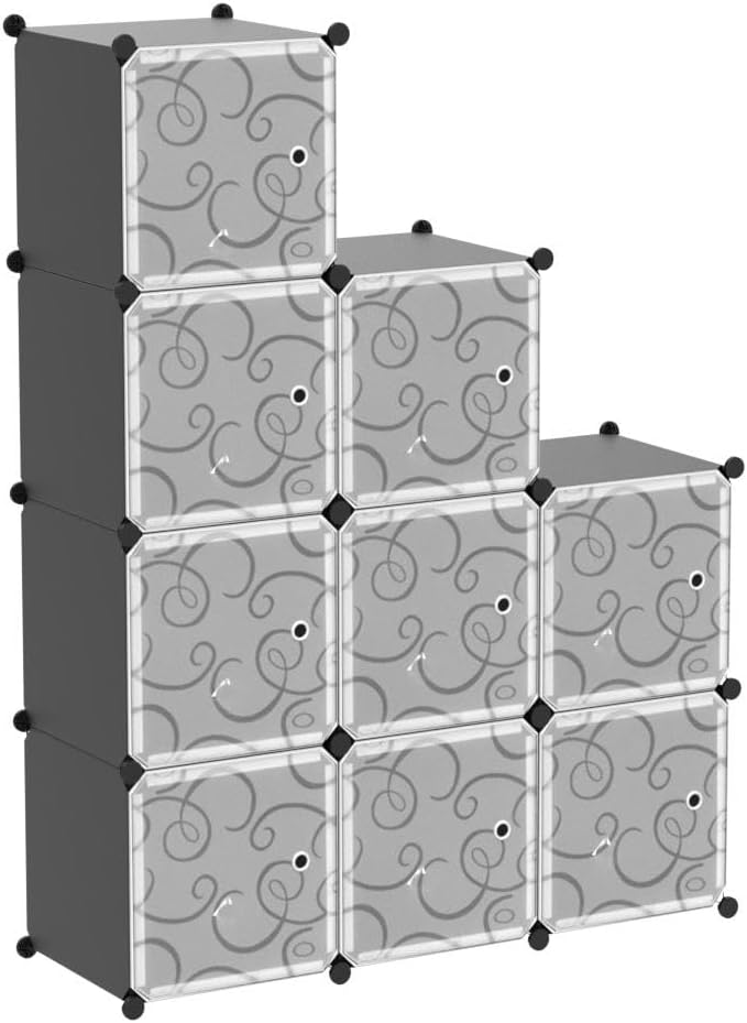 C&AHOME Cube Storage Organizer with Doors, 9-Cube Shelves, Closet Cabinet, DIY Plastic Modular Bookshelf, Storage Shelving Ideal for Bedroom, Living Room, 36.6”L x 12.4”W x 36.6”H Black USHS3009B-DOOR