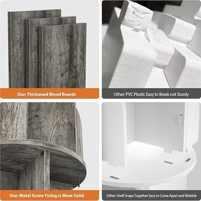 About This 【Sturdy 360° Rotating Bookcase】The Narrow Book Storage Shelf is made of high-quality P2 MDF Board that provides great...