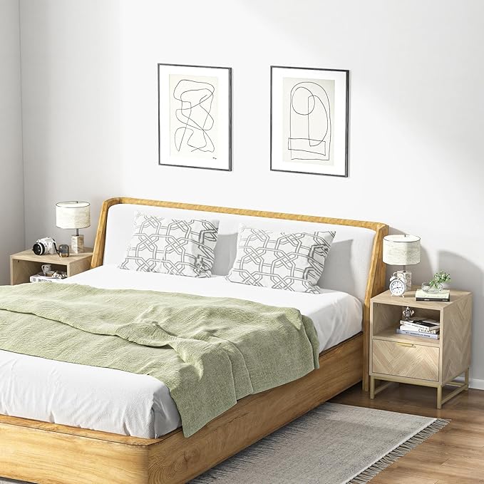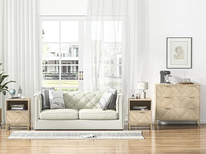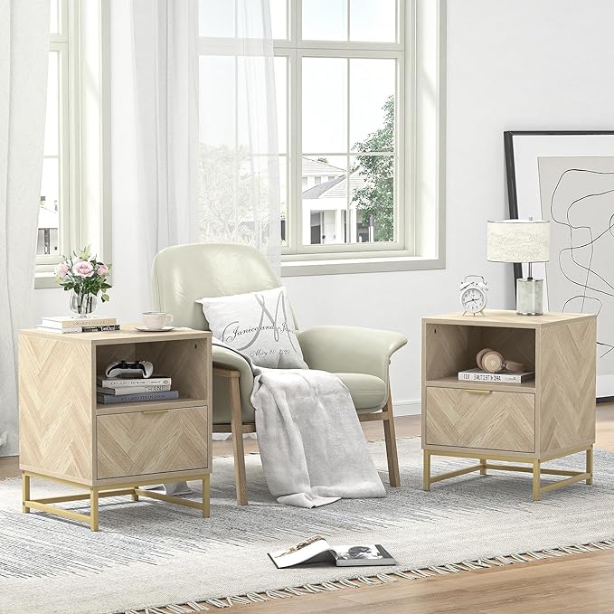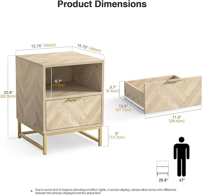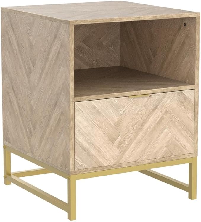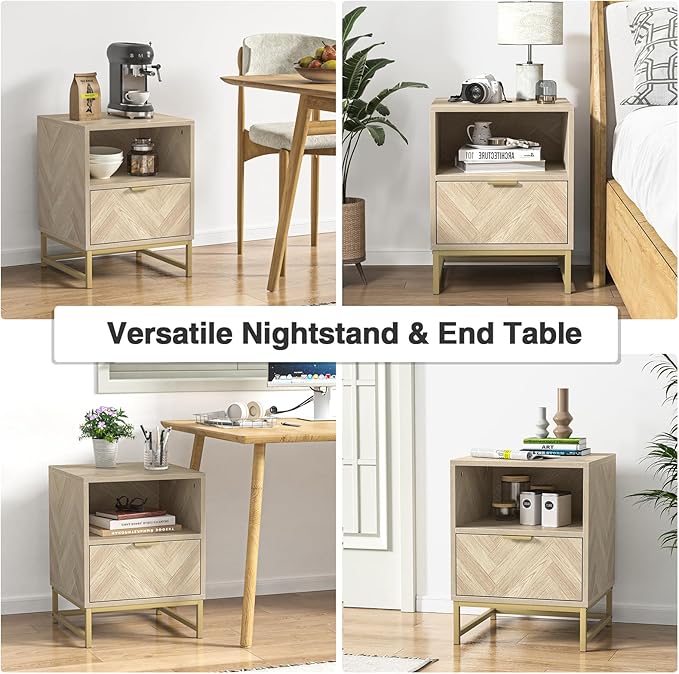 Anmytek Night Stand, Small Side Table, Sturdy Wood Nightstand with Storage Drawer and Shelf, Modern End Table Bedside Table with Polished Gold Handles for Bedroom, Dorm, Small Spaces H0054