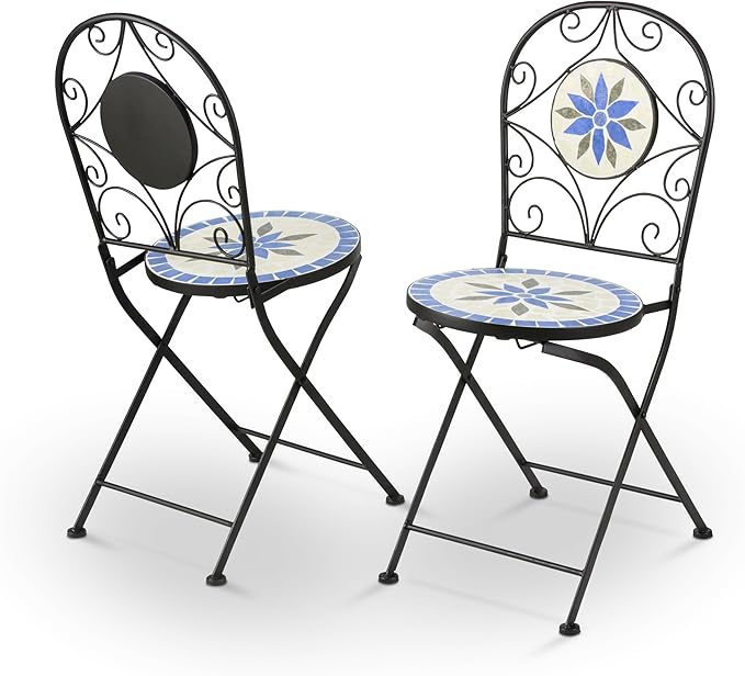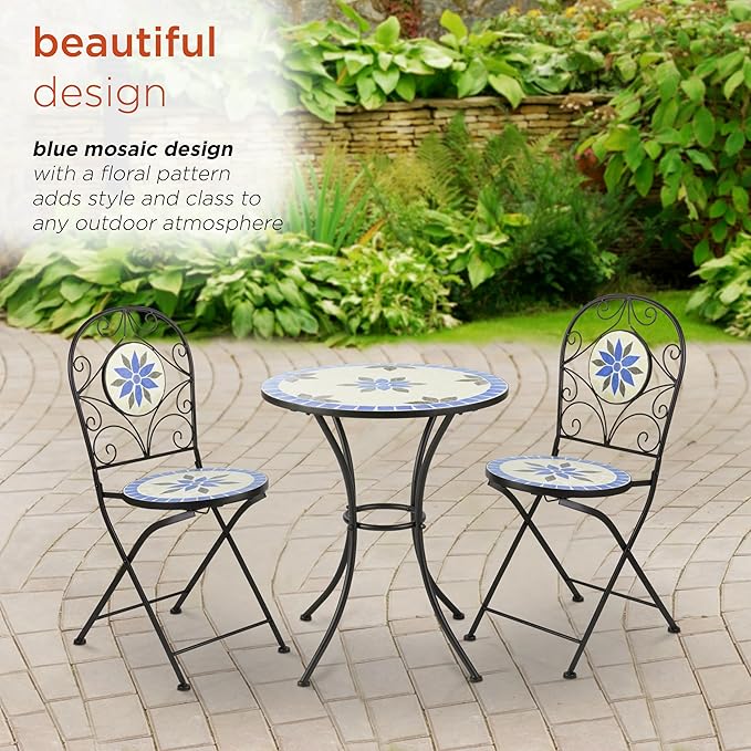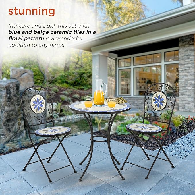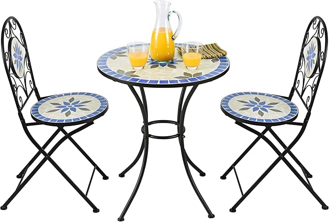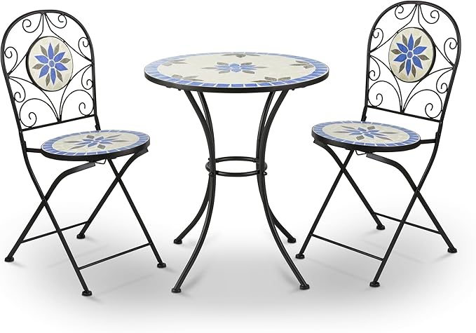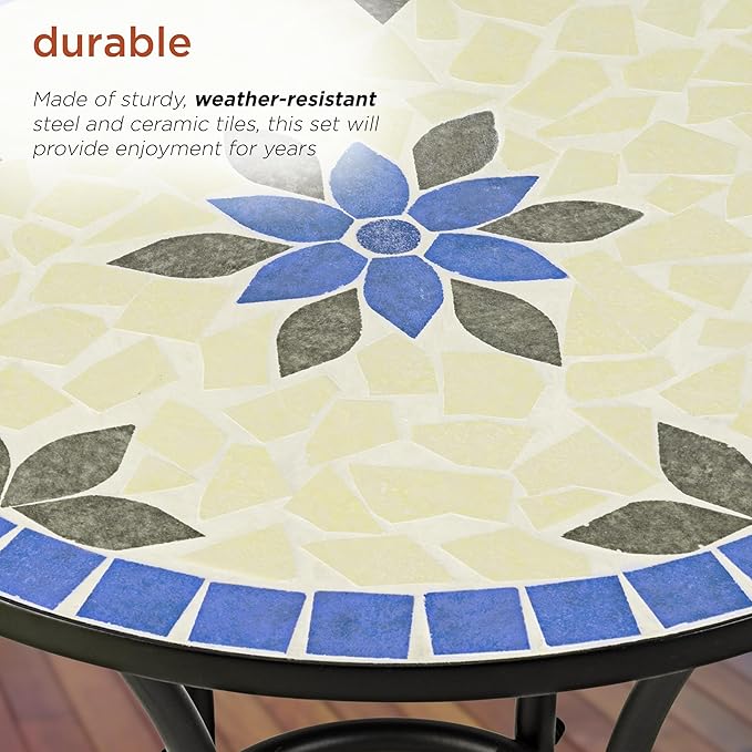 Alpine Corporation Blue and Beige Mosaic Bistro Set, 3-Piece