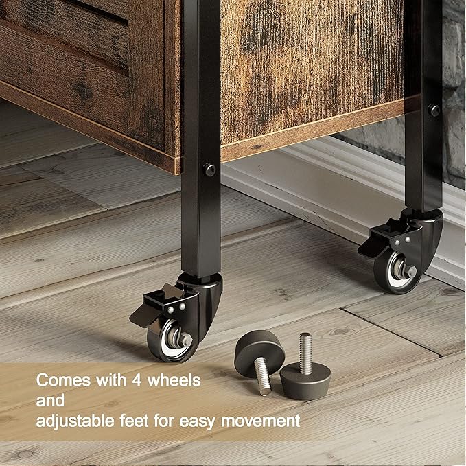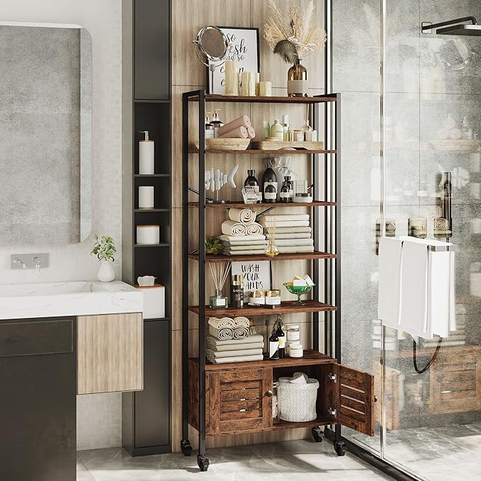 About This Feature 6 tier Height adjustable shelf and 2 door cabinet storage Comes with 4 wheels and adjustable footpads...