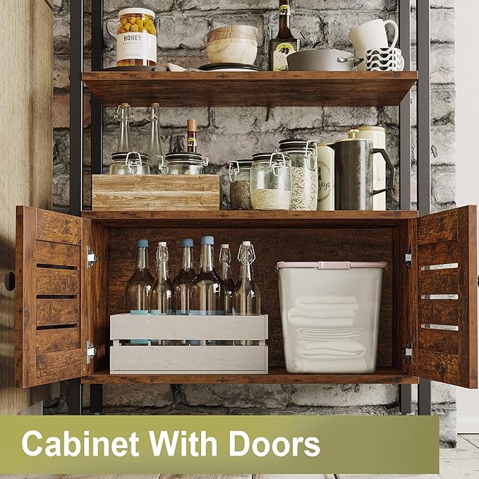 IRONCK Bookshelf and Bookcase with 2 Doors and 5 Shelves, 27.6" W Standing Storage Cabinet for Living Room, Home Office, Bedroom, Washroom, Vintage Brown