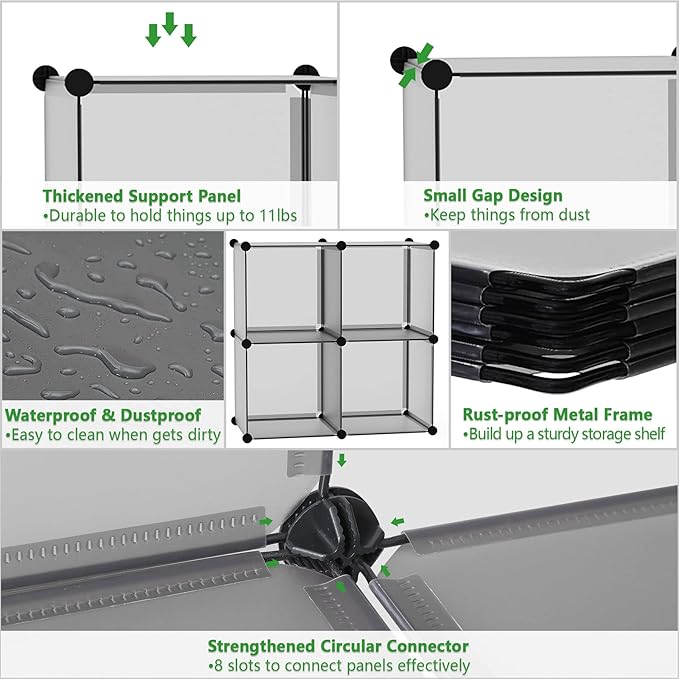 C&AHOME Cube Storage Organizer, 4-Cube Shelves Units, Closet Cabinet, DIY Plastic Modular Book Shelf Ideal for Bedroom, Living Room, Office, 24.8" L x 12.4" W x 24.8" H Grey UPCS04G