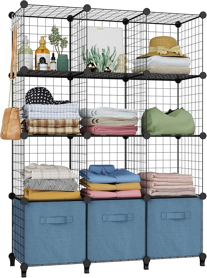 HOMIDEC Closet Organizers and Storage, 12 Storage Cubes, Wire Cube Storage DIY Room Storage Shelf for Garment Racks, Closet, Wardrobe