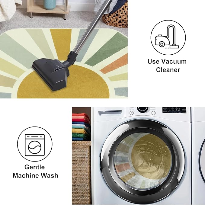Boho Washable Rug for Kids Room Playroom, 4'x 4'7" Colorful Sun Nursery Rug for Girls Boys, Ultra Soft Non-Slip Sunshine Carpet Small Play Rug for Classroom Reading Corner Dorm