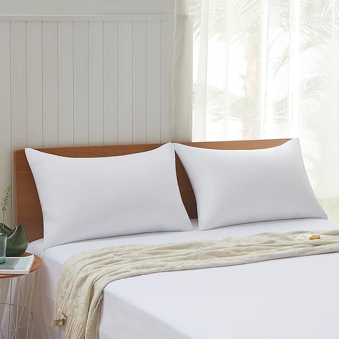 About This 100% Polyester Microfiber Soft and Supportive Pillows: These set of 2 queen size bed pillows are filled with...