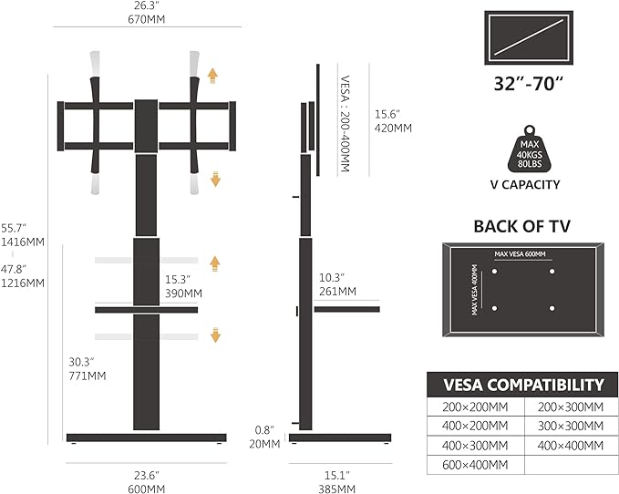 About This NOTICE BEFORE BUYING: This floor TV stand fits most 32 to 70 inch flat-panel LCD/LED/Plasma TVs up to...