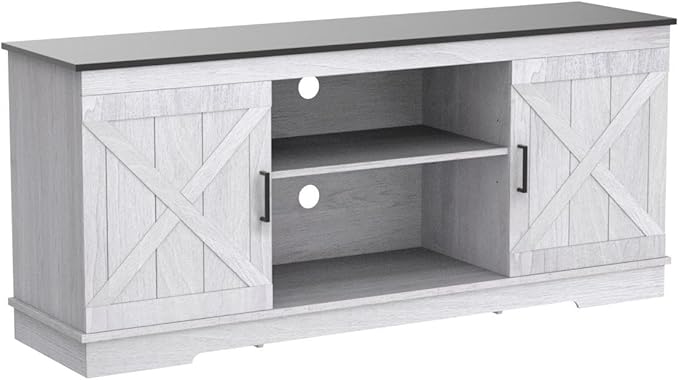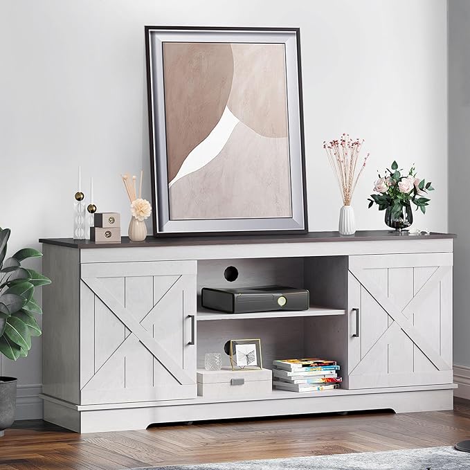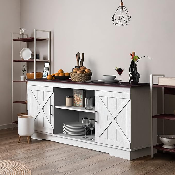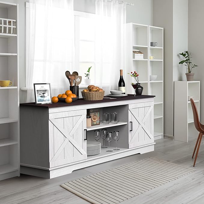 YITAHOME Buffet Cabinet, 59" Farmhouse Sideboard Buffet Storage Cabinet with Barn Door, Coffee Bar Cabinet with Capacity 300 lbs for Home Dinning Living Room, Grey White/Espresso, 26" Height