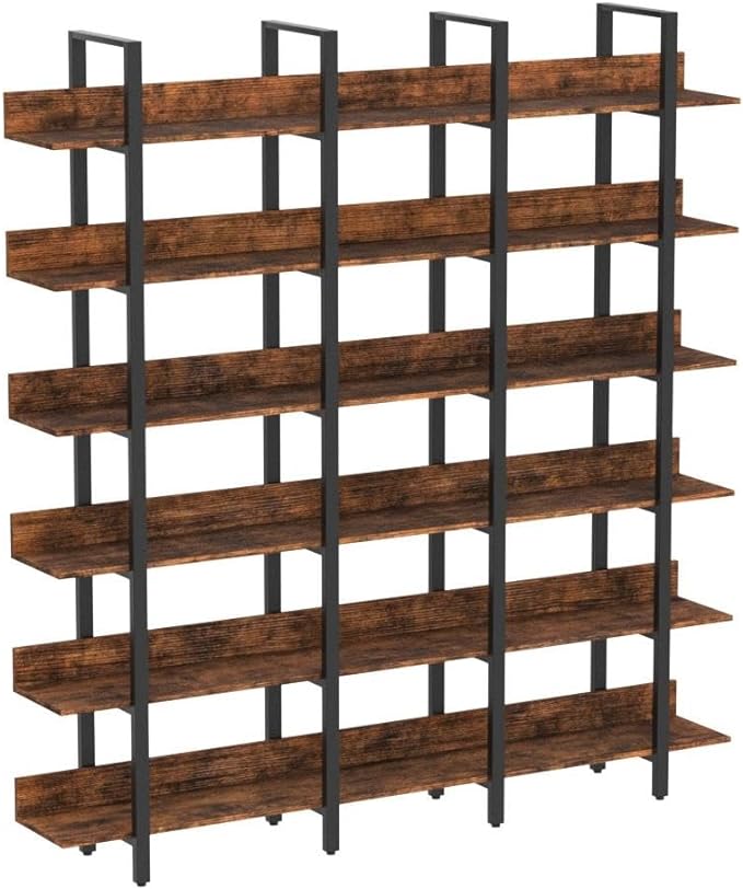 IRONCK Bookcase and Bookshelves Triple Wide 6-Tiers Large Open Shelves, Etagere Bookcases with Back Fence for Home Office Decor, Easy Assembly, Vintage Brown