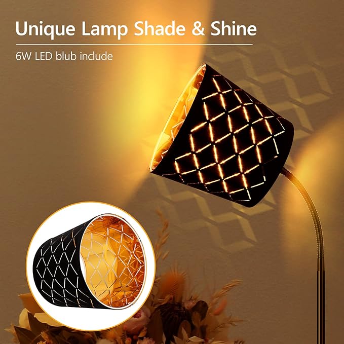 LED Floor Lamp, Standing Lamp for Living Room with Linen Lamp Shade,Adjustable Gooseneck Modern Reading Light,Floor Lamps for Bedroom,Office,Farmhouse,6W LED Bulb Included