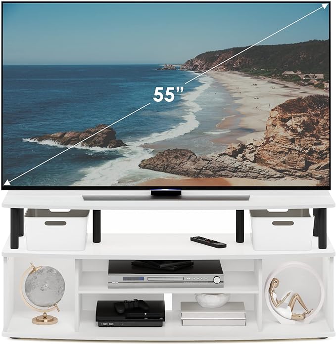 Furinno Jaya Large Entertainment Center Hold up to 55-in TV, Inch, White/Black