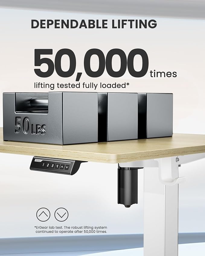 About This Outstanding Stability: This electric standing desk has a sturdy solid steel frame with aerospace-grade lifting column connectors (still...