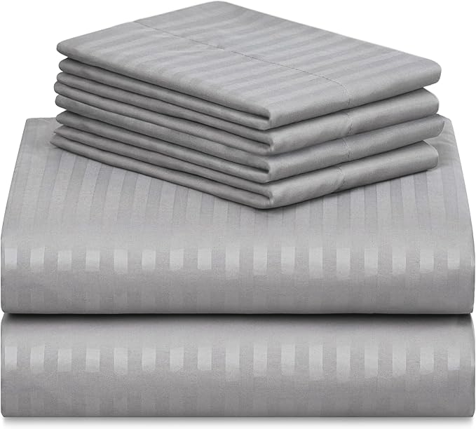LuxClub 6 PC Cal King Size Sheet Set Bed Sheets, Breathable Luxury Bed Sheets, Deep Pockets 18" Wrinkle Free Cooling Bed Sheets Machine Washable Hotel Bedding (Cal King, Striped Light Grey)