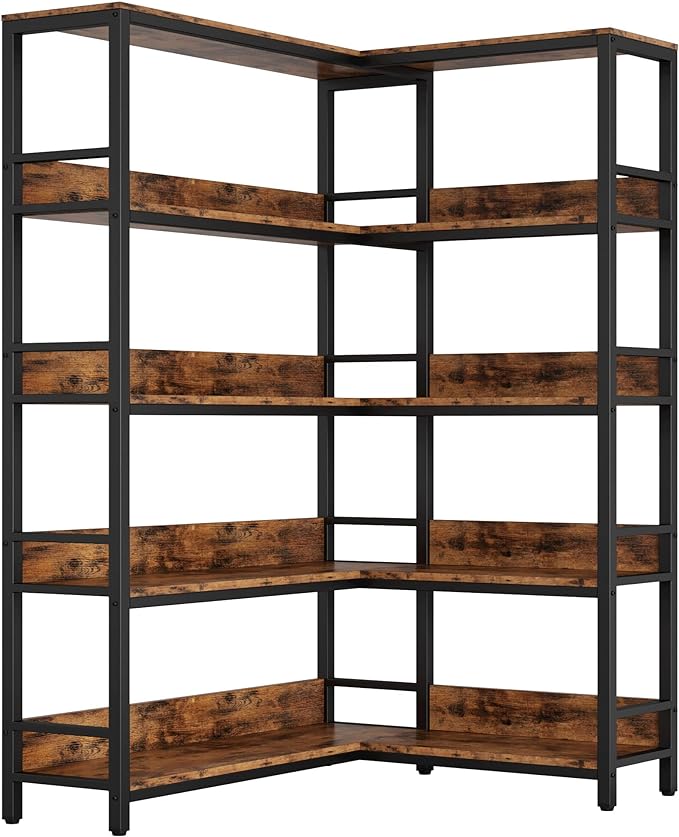 IRONCK Industrial Bookshelves 5 Tiers Corner Bookcases with Baffles Etagere Shelf Storage Rack with Metal Frame for Living Room Home Office