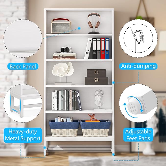 Tribesigns Tall Bookcase and Bookshelf, 70.8” Large Bookcases Organizer with 5-Tier Storage Shelves, Heavy Duty Free-Standing Library Bookshelf Shelving Unit for Living Room, Bedroom, Office (White)