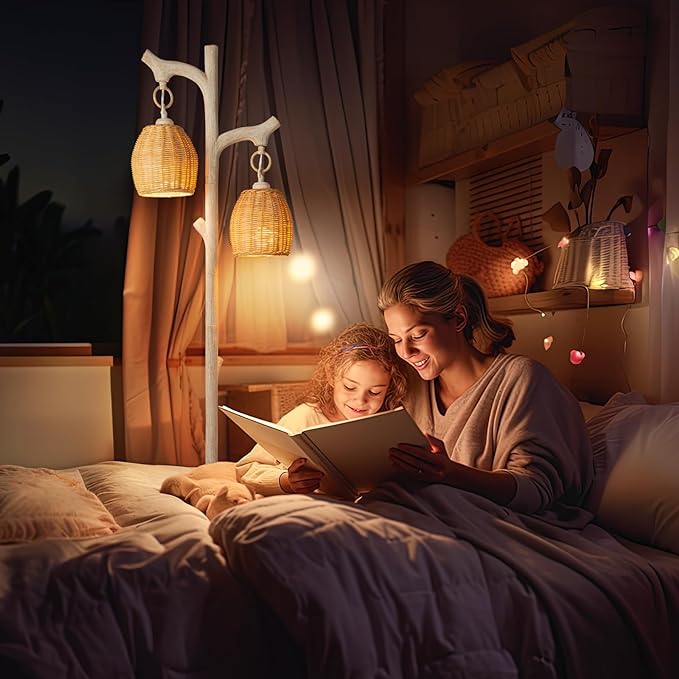 About This 68'' ht Standing Floor Lamp, Tree Trunk Wood Finish Column, 6"x 6" Wicker Drum shade, decor for living...