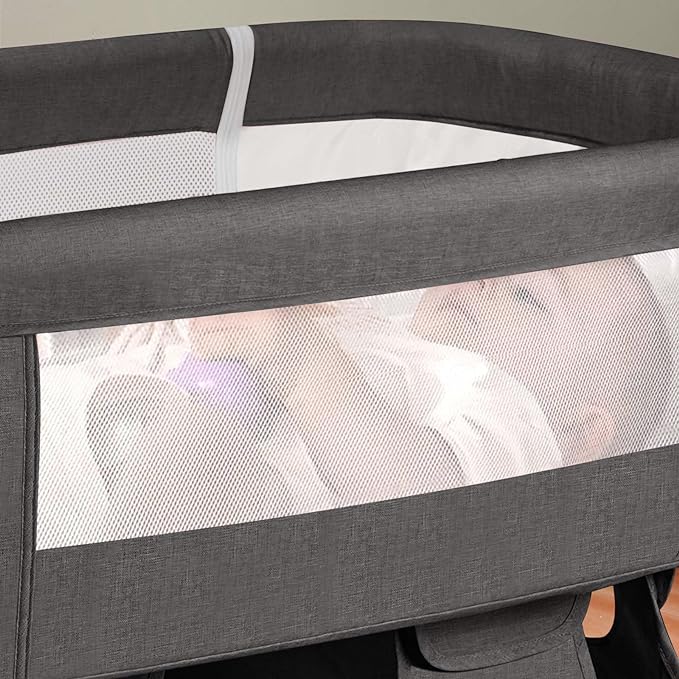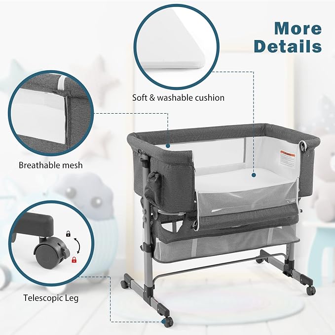 About This Safe and comfortable - This baby bedside crib meets safety regulations,and mesh of two-side makes baby feel breathable...