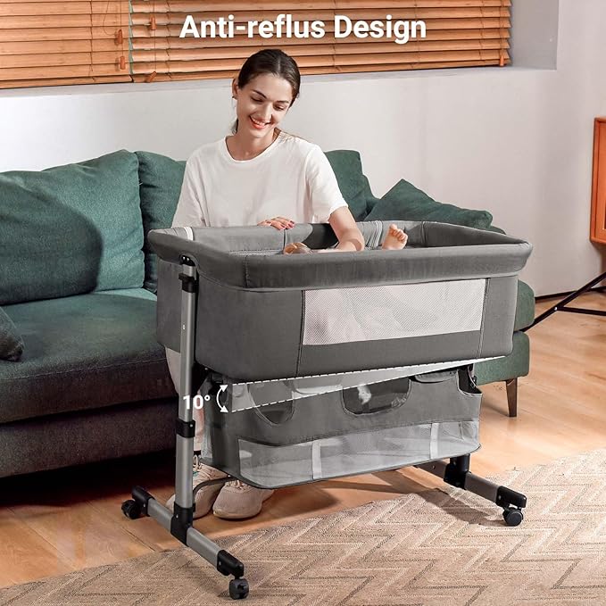 Bedside Crib,3 in 1 Baby Crib Adjustable Portable Bed for Infant,Baby Bassinet with Mosquito net Baby Newborn Must Have Bed,Grey