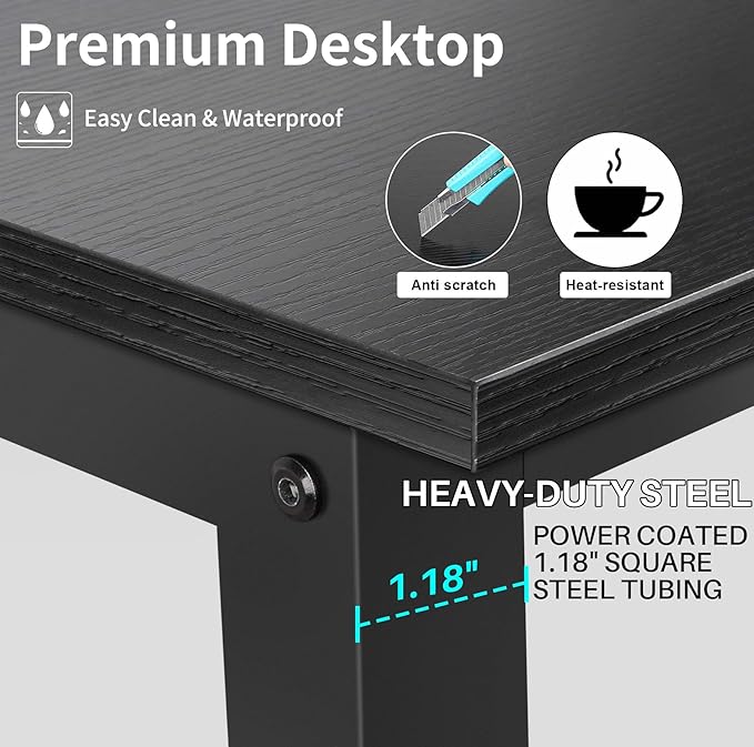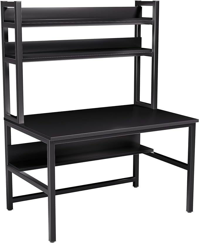 Aquzee Computer Desk with Hutch and Bookshelves, Large Leg Room 55 inch Width Black Desk with Space Saving Storage Shelves, Easy Assemble and All Hardware and Tools Included