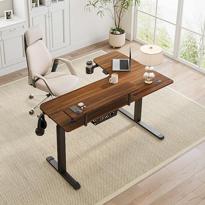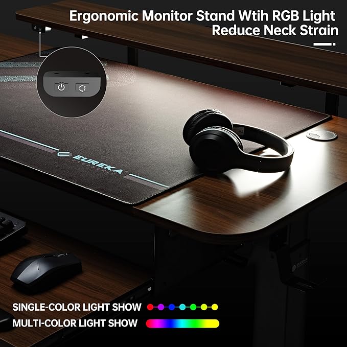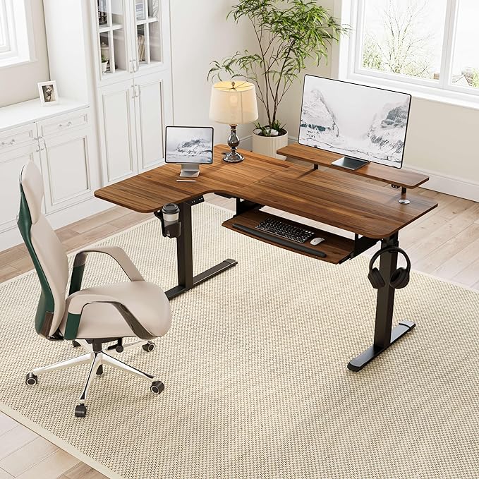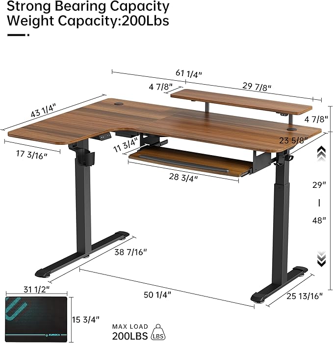 EUREKA ERGONOMIC Standing Desk Electric Adjustable Height (61"x43") Computer Desk with Keyboard Tray, Sit Stand Desk L Shaped Desk for Work/Home Office,Dual Motor,Memory Presets,2 USB/RGB,Walnut/Left