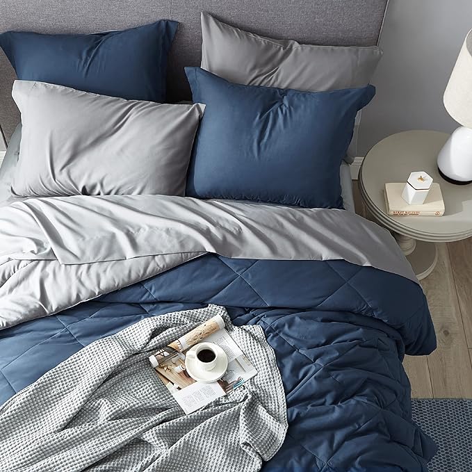 Bedsure Navy Full Size Bed in a Bag - 7 Pieces Reversible Comforter Set Full Bed Set with Comforters, Sheets, Pillowcases & Shams, Full Bedding Sets